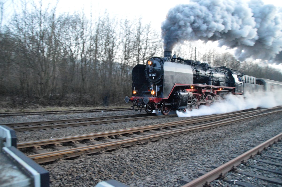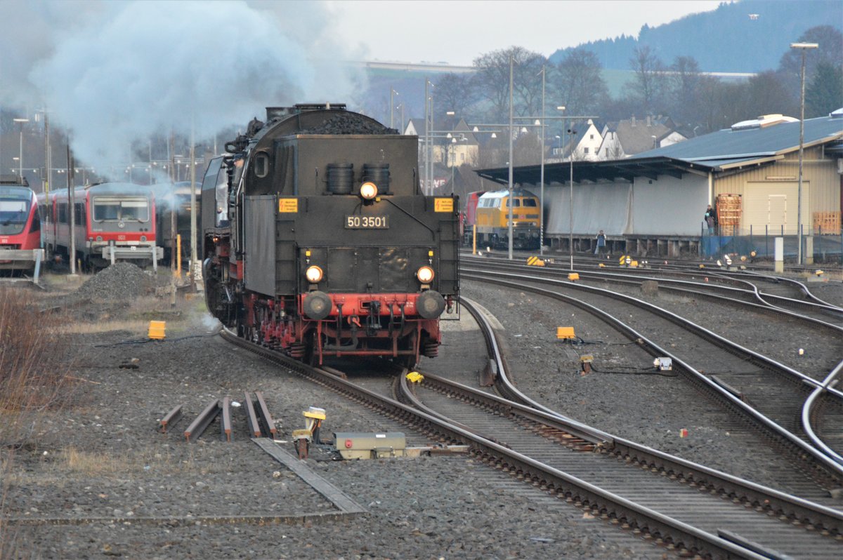 Ausfahrt mit viel Dampf aus Bestwig in Richtung Treysa.